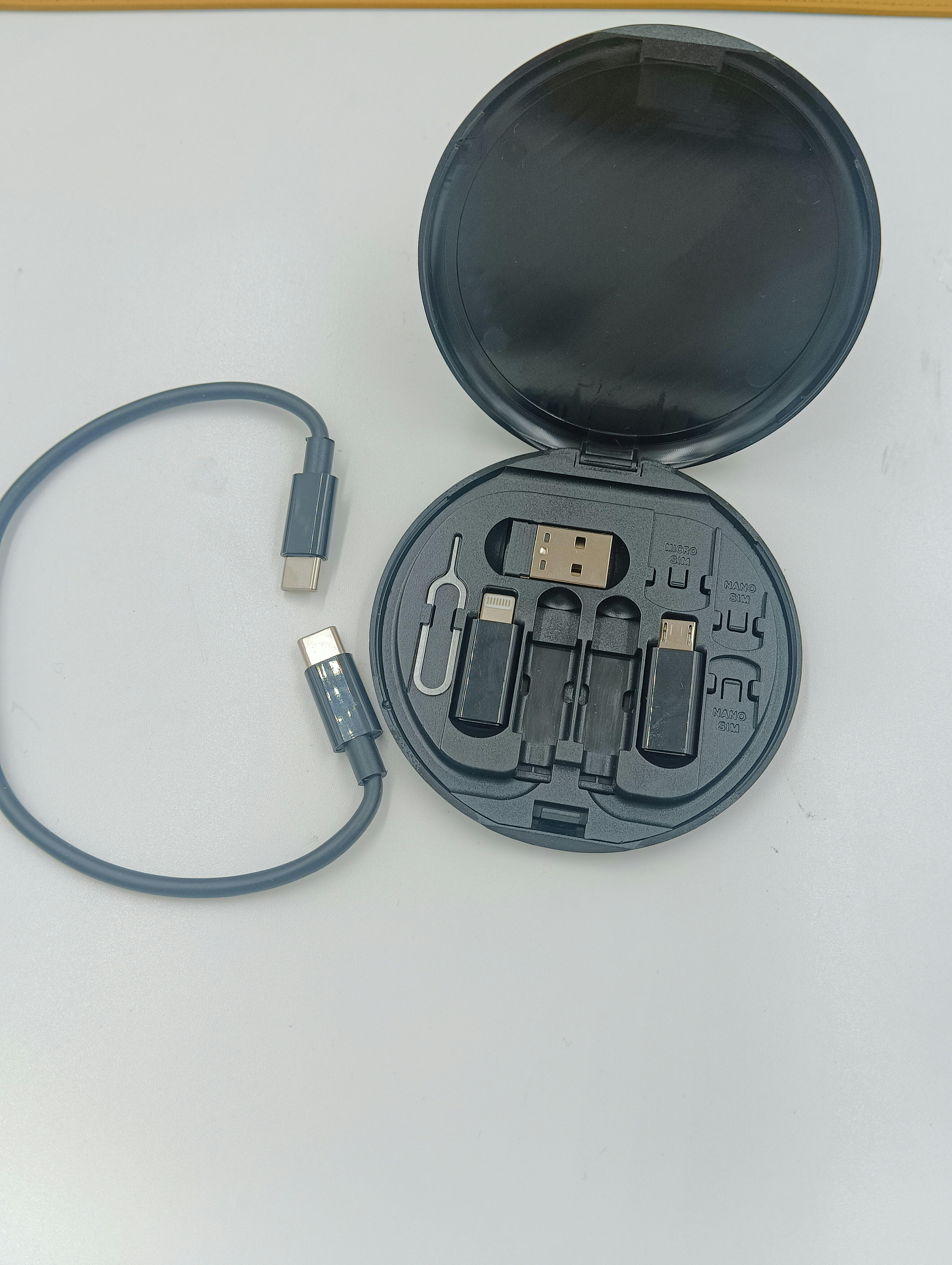 This travel cable set is a must-have for anyone on the go. It includes all the essential connectors—Type-C to Type-C, USB A, Lightning, and Micro USB—making it compatible with a wide range of devices. The 60W fast charging ensures quick power-ups, The compact design, featuring a SIM ejector pin and storage slots, adds extra convenience.
